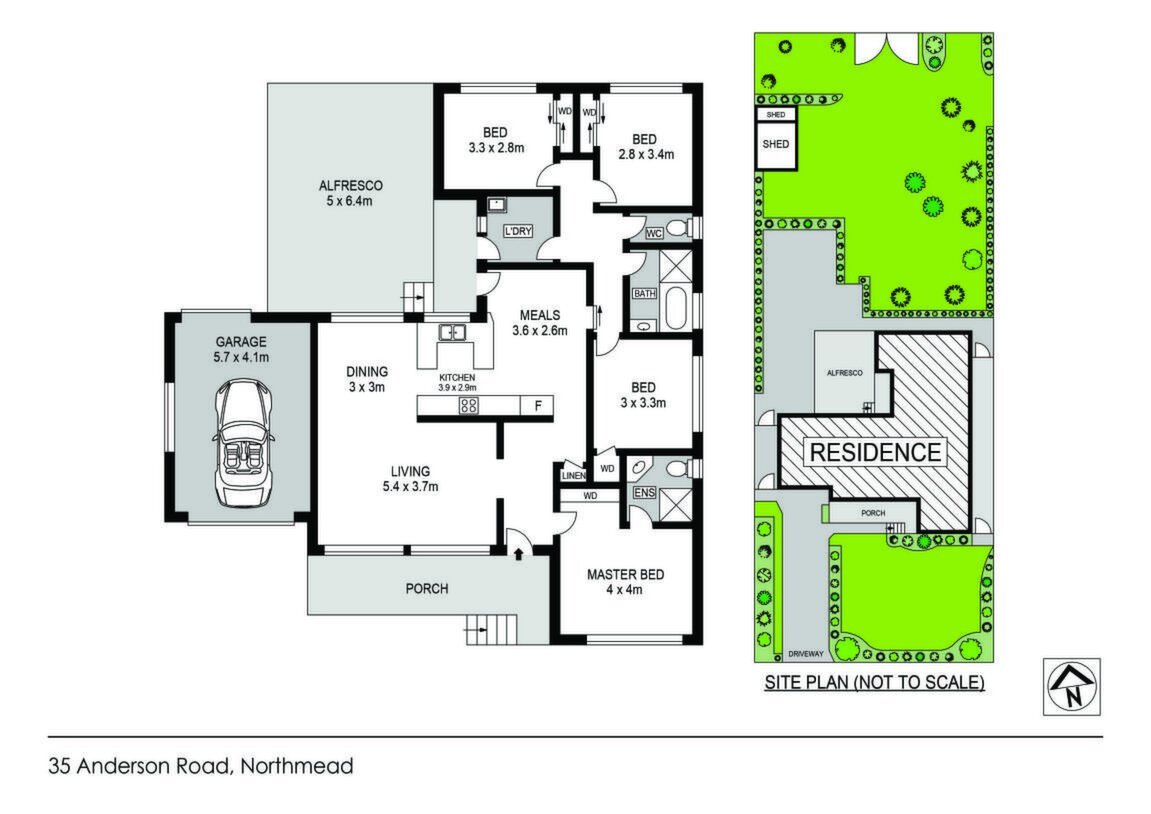 Master bedroom with an ensuite Built-ins robes in all four bedrooms Open plan kitchen with stone bench top and ample cabinetry "L" shaped living and formal dining combined Large family bathroom with separate toilet room Split system air-condition throughout Drive-through lock-up garage Large alfresco area, great for entertaining Well-maintained, private backyard that backs onto Northmead Reserve Land size: 916.9 sqm (approx.) with a frontage of 18.5M (approx.)