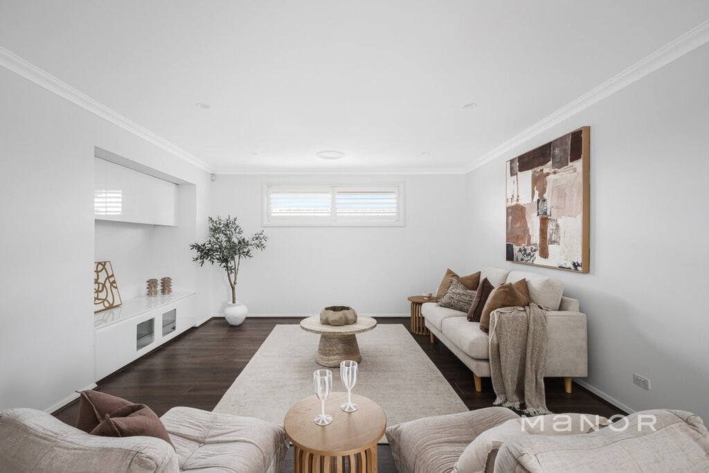 Master bedroom with private balcony and walk-in wardrobe Well-sized bedrooms with walk-in and built-in wardrobes Spacious kitchen with high-end appliances and generous storage Large walk-in pantry Combination of tiling, floorboards, and plush carpeting throughout Plantation shutters LED downlights throughout Ducted air conditioning Dedicated media room with projector screen and built-in storage Seamless indoor-outdoor flow with bifold doors Outdoor entertaining area with timber decking and ceiling fan Landscaped, low-maintenance gardens